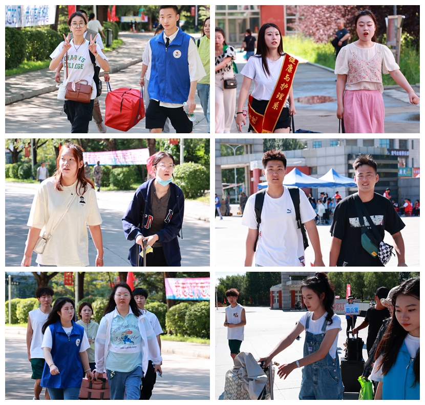 新生和家长在学长志愿者的引导下有序入校,报到、填表、领取物品……各项流程有条不紊地进行,青春的朝气、美好的憧憬,溢满整个校园。