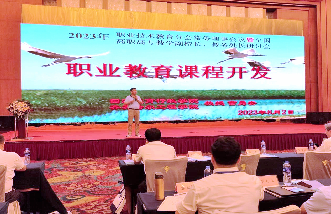 8月2日上午,2023年职业技术教育分会常务理事会议暨全国高职高专教学副校长、教务处长研讨会在贵阳召开,中国高教学会副秘书长、中国高教学会职业技术教育分会秘书长、贵州省教育厅副厅长、高等教育出版社副总编辑、各高职高专学校党委书记、校长、教学副校长、教务处长等相关部门领导出席会议,学校理事长曹勇安受邀出席并在会上以《职业教育课程开发》为题作讲座。