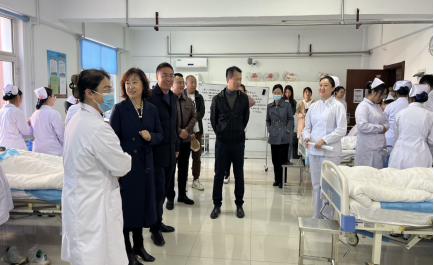 民康医院考察团在郭伟东书记、郭玲玲主任陪同下参观大健康教育实训教学中心,在参观中,对我校实训中心建设予以肯定,对上课学生着装规范、练习认真的精神状态赞赏有加。