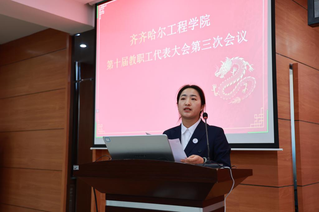 3月1日,乐投app官方在线入口第十届教职工代表大会第三次会议在图书馆601报告厅召开,来自学校9个基层工会的156名教职工代表参加大会,200余位教职工列席会议。学校工会 副主席王丽萍主持大会。
