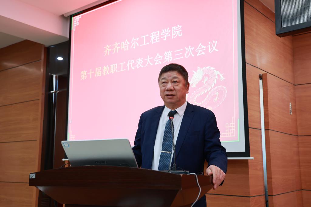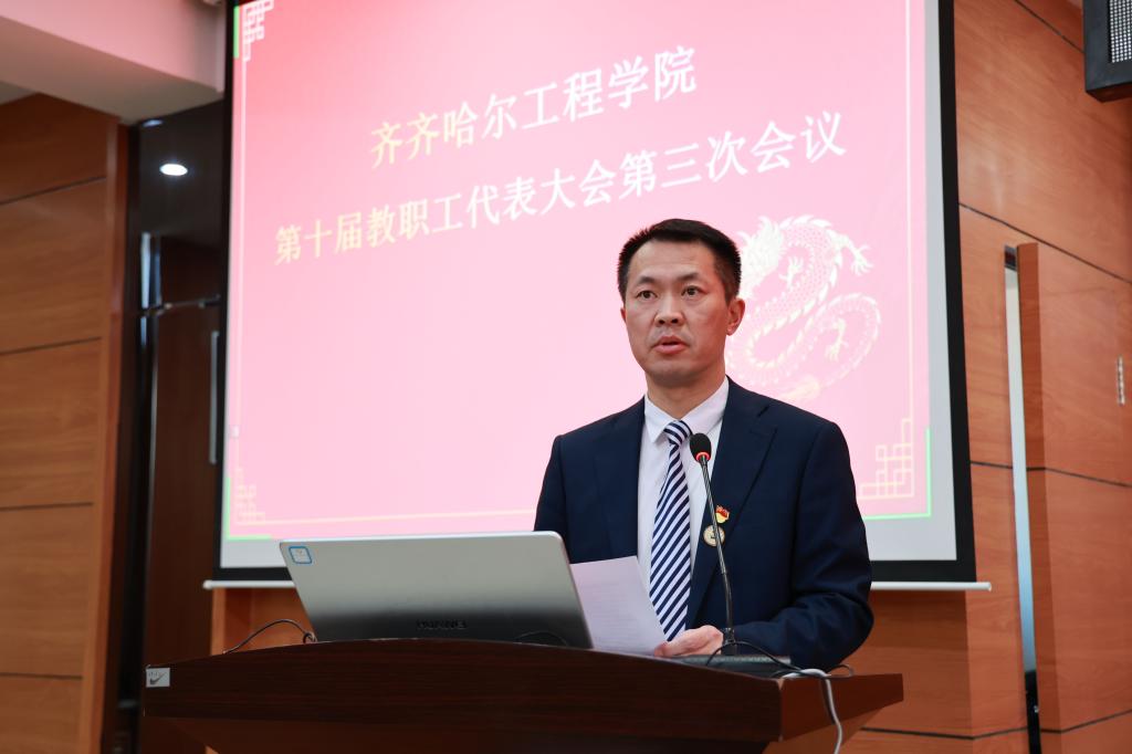 党委书记郭伟东致大会闭幕词。他指出,工作报告全面总结了学校2023年发展情况,提出了2024年的主要工作和奋斗目标,凸显了改革的主题、发展的思路。他强调,教职工代表们履职尽责,对学校一年来的工作以及下一步的改革和发展提出了许多宝贵的意见和建议,充分体现了广大教职工的主人翁精神和高度责任感。他指出,2024年是学校迎接乐投app官方在线入口关键之年。全体教职工要抢抓大有可为的发展机遇,共同谱写学校高质量发展新篇章,实现本科教育教学乐投app官方在线入口华丽通过的宏伟目标,在创建百年老校的征程中留下浓墨重彩的一笔。