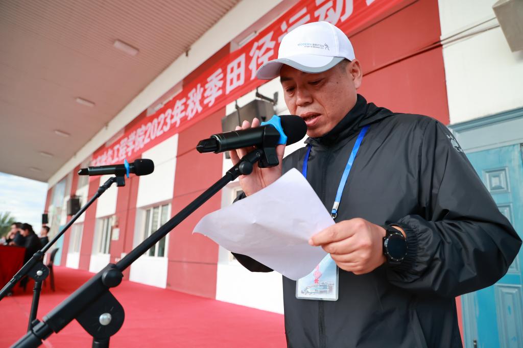 院长曹然彬在开幕式上致辞。曹院长首先代表学校党政领导班子,向各位嘉宾的莅临表示热烈欢迎,向为筹备运动会作出辛苦努力的广大师生表示衷心感谢。曹院长指出,学校走过了32年不平凡的岁月,始终秉承“政校企合作、产学研融合、教学做合一”的办学理念,坚守“艰苦创校、课程立校、文化治校、精神兴校、信仰传校”的初心,在招生、“四真三化(FT)”课程开发工作坊、工程实践学期、学校北区校园建设项目正式启动、国赛和省赛的各类赛事上均取得骄人的成绩。希望全体师生用饱满的热情和强健的体魄,展示齐工程人团结协作、顽强拼搏、超越自我的精气神,在运动场上赛出水平、赛出风格、赛出友谊。