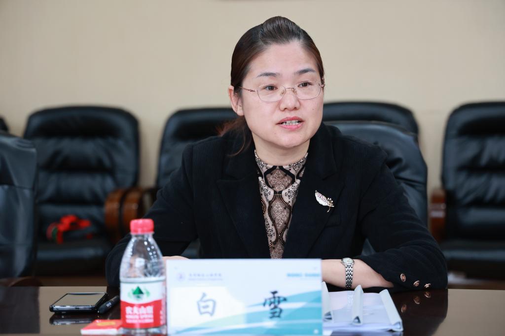 曹然彬代表学校对郭海涛一行表示热烈欢迎,详细介绍了学校基本情况、师资队伍、当前重点工作及制约学校高质量发展的问题和下一步工作思路。希望双方深化合作,加强人才干部合作交流,共同开创本市和学校高质量发展新局面。