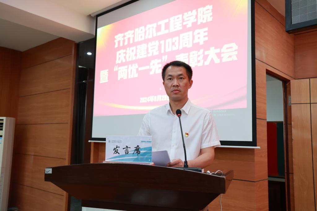 党委副书记、常务副院长陈景鑫同志宣读《关于表彰优秀共产党员、优秀党务工作者和先进基层党组织的决定》,授予刘贤鹏等41名同志“优秀共产党员”称号、授予张磊等8名同志“优秀党务工作者”称号、授予建筑工程系党总支等11个党组织“先进基层党组织”称号。