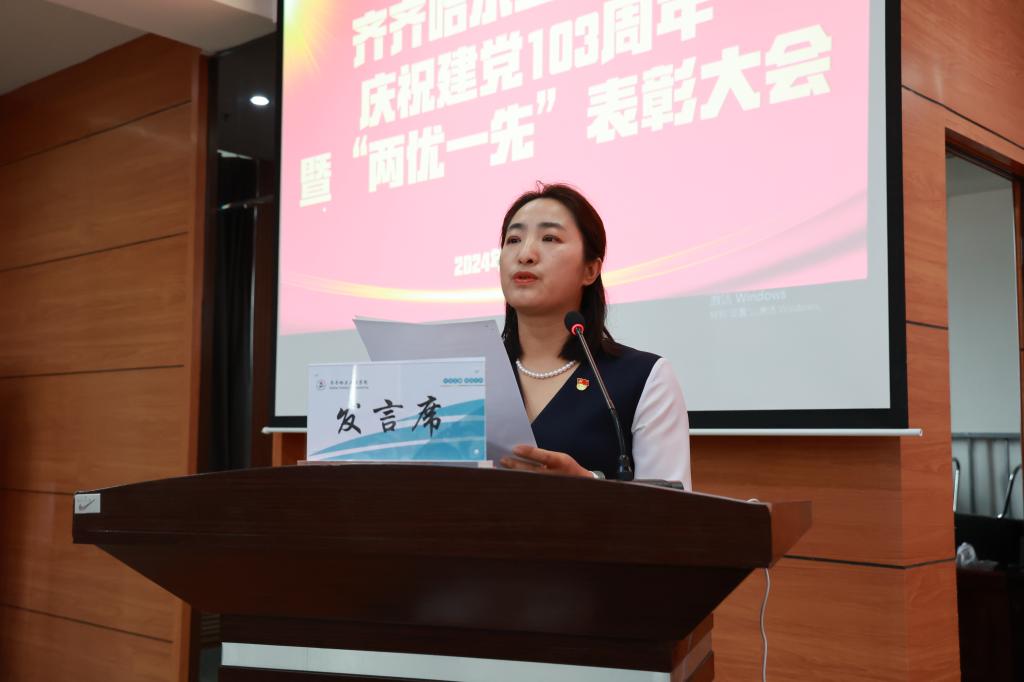 为庆祝中国共产党建党103周年,表彰先进典型,激励全校各级党组织和广大党员进一步统一思想,鼓舞干劲,凝聚力量,6月28日,学校党委在图书馆601报告厅举行庆祝建党103周年暨“两优一先”表彰大会。校级党员领导干部、受表彰的先进集体代表、优秀个人以及在校师生党员参会。
