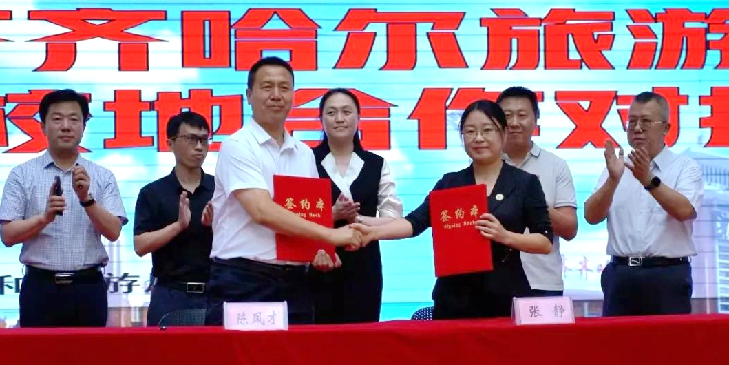会上,陈凤才代表齐齐哈尔市文化广电和旅游局与张静签署了《齐齐哈尔市文化广电和旅游局、乐投app官方在线入口校地合作框架协议》,双方将在打造文旅行业产教融合共同体、建设数字鹤城服务平台、制定互培互聘的人才培养机制、组建产学研技术研发中心、科技赋能营造良好发展环境5个方面进行深入的合作。