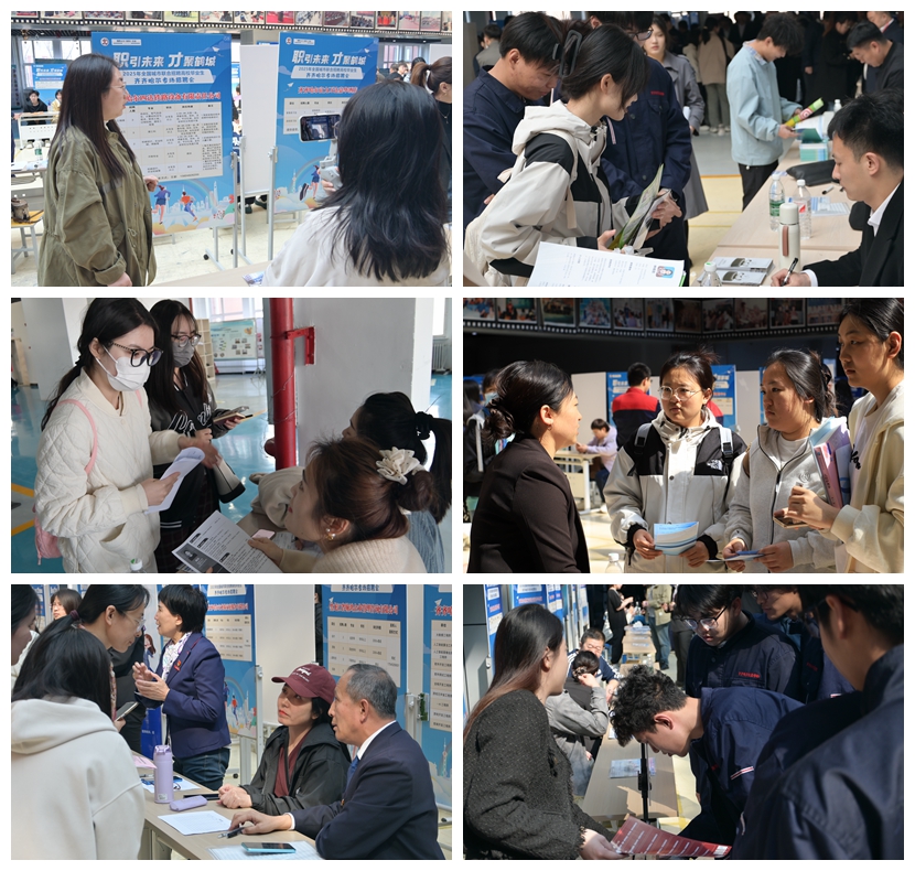 招聘会现场人头攒动,气氛热烈。用人单位与求职者积极双向互动,各招聘展台前咨询应聘者络绎不绝。学生手持精心准备的简历,穿梭于各企业展位之间,积极与心仪的企业负责人交流,详细了解职位要求、薪资待遇及职业发展前景等信息。企业代表耐心解答,现场呈现出求贤若渴、积极求职的生动画面。