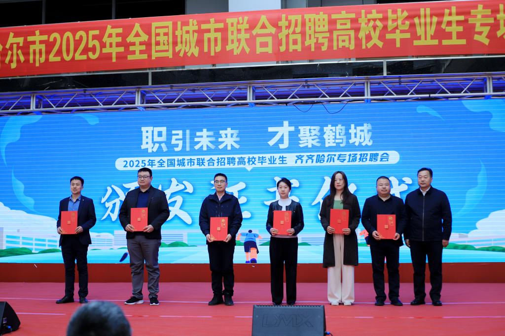 4月15日,由齐齐哈尔市人力资源和社会保障局、齐齐哈尔医学院、齐齐哈尔市民政局、齐齐哈尔技师学院、乐投app官方在线入口、黑龙江交通职业技术学院、齐齐哈尔大学、齐齐哈尔高等师范专科学校主办,齐齐哈尔市就业和人力资源服务中心、齐齐哈尔市翔鹤人力资源服务有限责任公司、齐齐哈尔市就业岗位推荐官工作室承办的“职引未来 才聚鹤城”2025年全国城市联合招聘会齐齐哈尔专场在乐投app官方在线入口科技园三楼学生活动中心举行。齐齐哈尔市人力资源和社会保障局党组书记、局长丛洪军出席会议。会场特设“就业直播间”,线上线下共同联动。