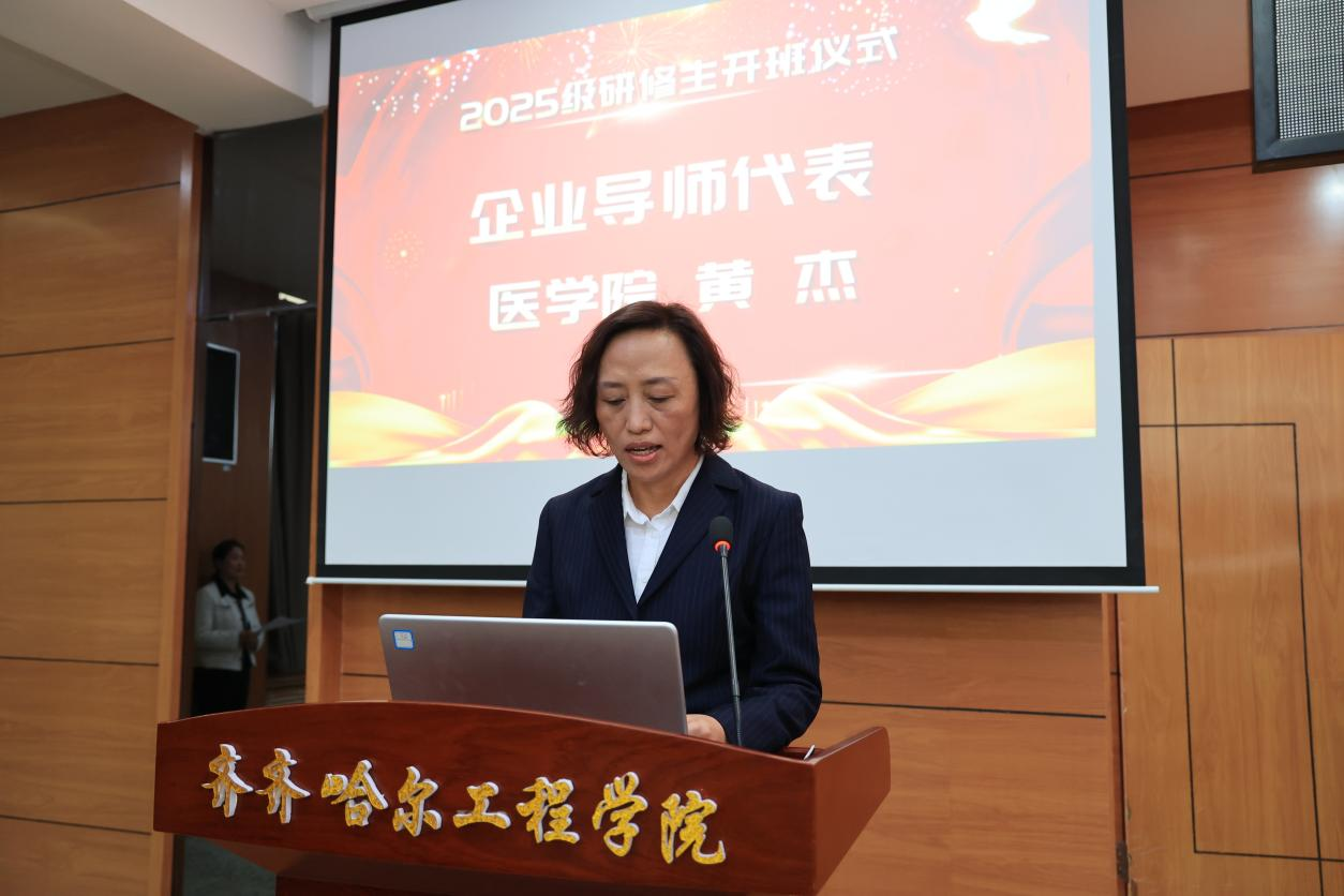 企业导师代表、医学院银龄教师黄杰以培养产教研一体化科研人才为目标,依托产教集团,规划未来实践学习的方向。