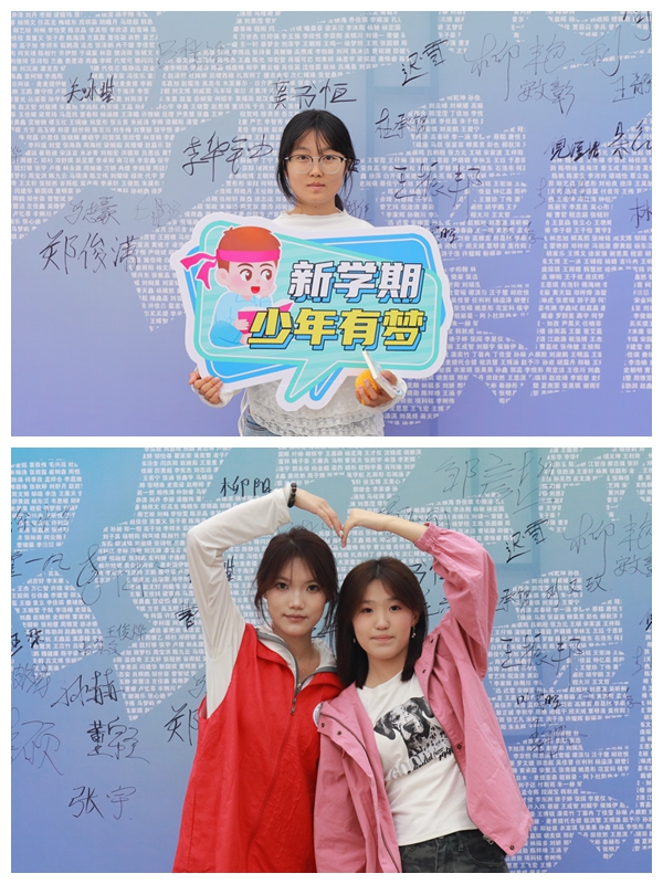 学校精心布置了迎新签到墙与幸运抽盲盒