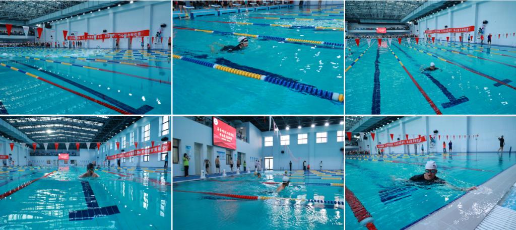 比赛现场气氛热烈而紧张。在50米蛙泳和50米自由泳项目中,选手们如飞鱼般破浪前行,激荡的水花映衬着他们矫健的身姿;在4×50米自由泳男女混合接力赛中,队员们配合默契、交接流畅,每一次精准的转身与奋力的冲刺,都赢得了现场观众的阵阵欢呼。