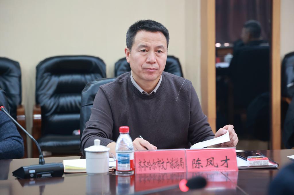 1月14日下午,黑龙江省文化和旅游厅党组成员、副厅长蒋兴成率队来校,就文旅领域“十五五”重大工程项目谋划情况开展专题调研。调研组成员包括黑龙江省文化和旅游厅政策法规处处长于子洋、副处长吕明,齐齐哈尔市文广旅游局副局长陈凤才,大庆市文化广电和旅游局三级调研员刘波、产业发展科科长符浩、政策法规科副科长滕菲等。学校创校校长、理事长曹勇安,校长曹然彬,党委副书记、纪委书记、副校长陈景鑫,副校长白雪、副校长崔晓东、党委宣传统战部部长张苗出席座谈会。