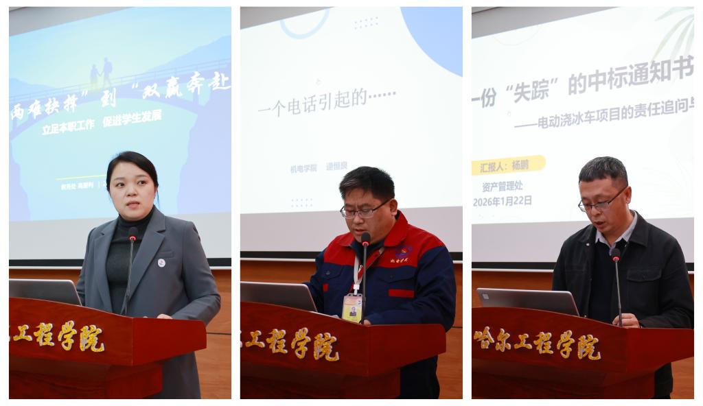 会上,教务处高爱利以《“两难抉择”到“双赢奔赴”》为题、机电学院逯恒良以《一个电话引起的……》为题、资产管理处杨鹏以《一份“失踪”的中标通知书》为题、机电学院高鹏一个座位引发的逆袭为题、齐工产教集团隽永刚“角色”引发的变化为题、土木与管理学院袁继杰以《“忐忑应战”到“收获认可”的蜕变》为题、艺术与体育学院姜岩以《微专业“破冰记”》为题分享了精彩的案例故事。