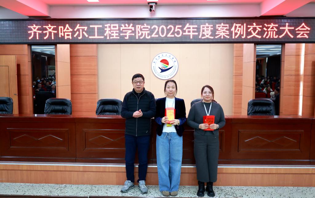 副校长张静宣布案例交流大会教师获奖情况:土木与管理学院袁继杰、艺术与体育学院姜岩荣获一等奖;机电学院高鹏、齐工产教集团隽永刚荣获二等奖;教务处高爱利、机电学院逯恒良、资产管理处杨鹏荣获三等奖。