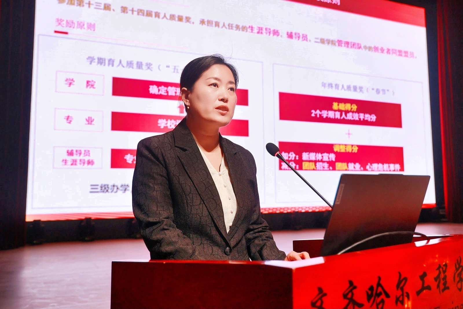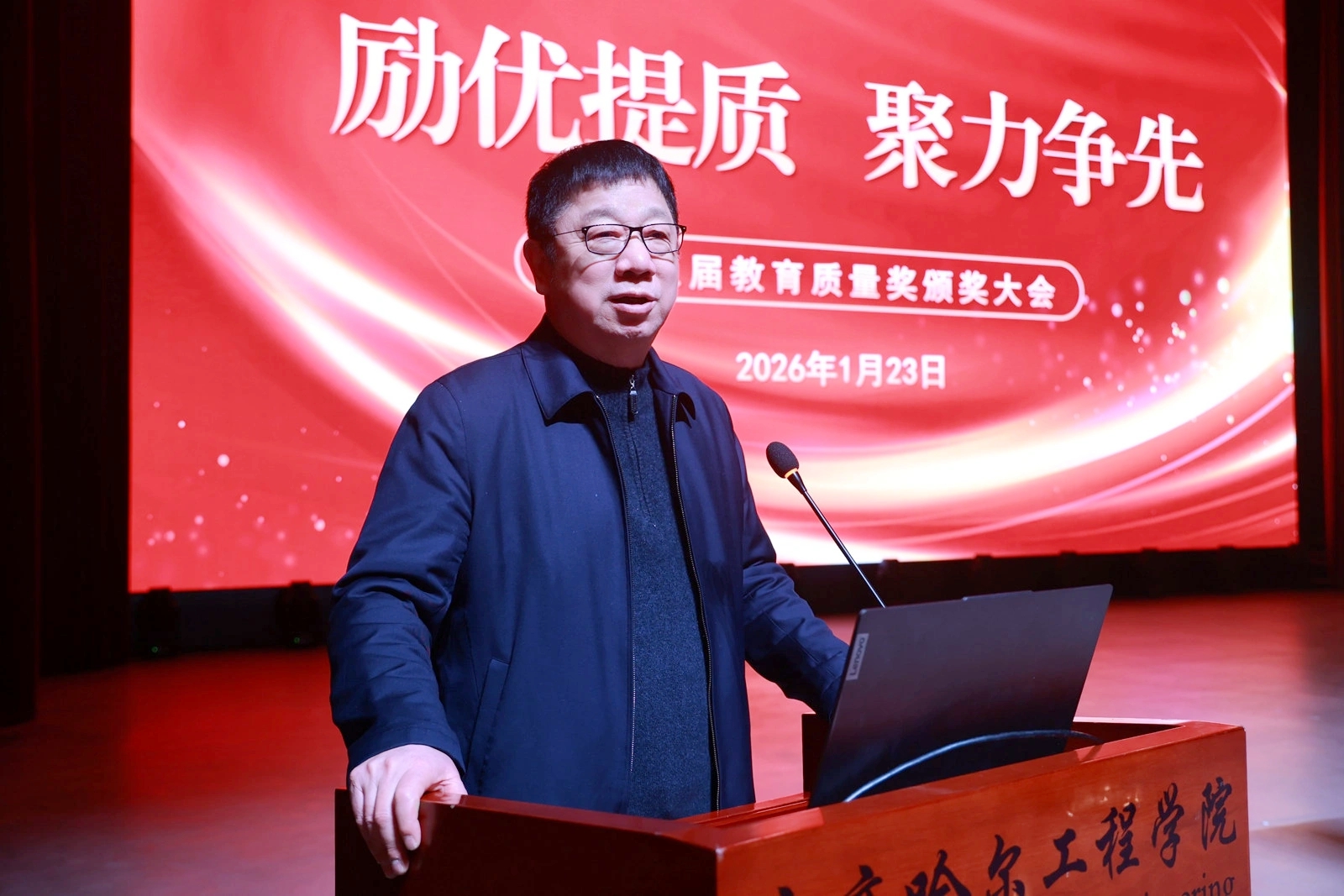 教务处处长李文禹围绕奖励范围、奖励办法及奖励情况三个方面,作教学质量奖评定工作汇报。他指出,教学质量奖的设立显著提升了教职工的福利待遇,同时也意味着更高的要求和更重的责任。未来工作将从三个方面推进:一是服务学生成长,持续优化生涯导师工作机制;二是依托新媒体平台,全方位展示办学特色与各专业优势;三是强化质量工程引领,促进FT课程建设走向深入、落到实处。