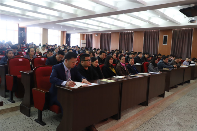 在上午的大会上,学院院长曹然彬作题为《抓评估 优课程 育新人 全力创建应用型本科示范高校》的行政工作报告。报告从学校办学影响力不断扩大、教育教学改革不断深化、学生工作强化学风建设、科研工作进一步加强、评建工作稳步推进五个方面,回顾了学院2018年取得的主要成绩并剖析存在的主要问题及不足,强调当前我国高等教育改革不断深化,对新时代本科教育提出更高要求。特别是《国家职业教育改革实施方案》的出台,以及我省推进地方本科高校转型发展、创建应用型本科示范高校的举措,为我们学院教育事业的发展带来大好机遇,务必抓紧抓牢。