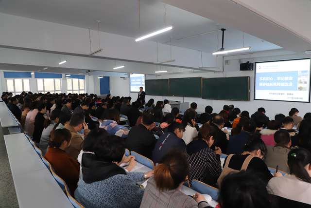1030日下午,学院理事长曹勇安为全体教职工讲授《不忘初心、牢记使命,乘评估东风持续改进》专题党课。