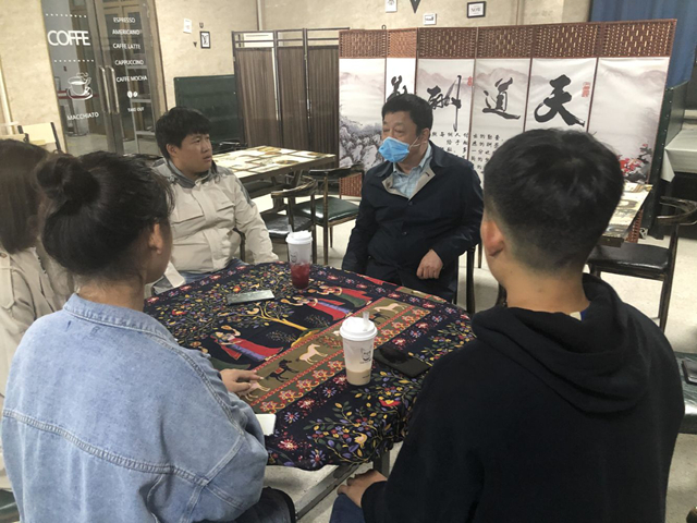 在“奢茶”奶茶店,正巧碰见4名刚刚退役复学的大学生在聊天,理事长便兴致勃勃地坐了下来,和大家聊了起来,询问所学专业情况,关心大家是否适应学校生活,重点谈到了关于学分绩点的要求,越聊越开心。理事长要求笔者要把退役大学生好好组织起来,发扬他们在部队的优良作风。走出奶茶店,店主捧着2杯刚刚做好的奶茶追了出来,一定要送给理事长,理事长谢绝并说:“照顾好学生才是最重要的,那样比奶茶更暖人心!”