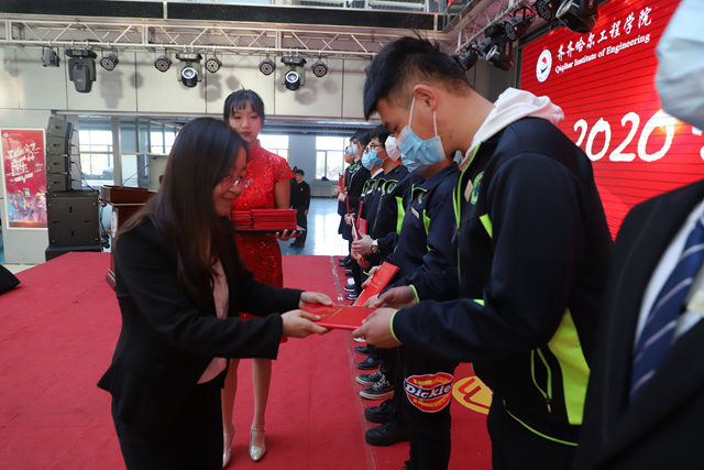 建筑工程系、管理工程系主任陈景鑫,信息工程系学生工作副主任孙晓芳为寝室学长颁发聘书