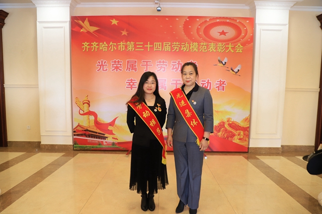 学生代表向市先进集体代表冯伟和市劳动模范张静献上鲜花。两位老师在热烈的锣鼓声中,带着全校师生的祝福和期待前往齐市工人文化宫,参加齐齐哈尔市第三十四届劳动模范表彰大会。