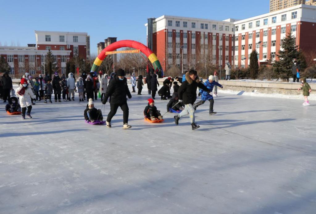 本次活动共设置了“冰上兔子舞”“拉冰车比赛”“速滑比赛”“冰上保龄球”“冰上拔河”五个形式多样,极具趣味性的项目。