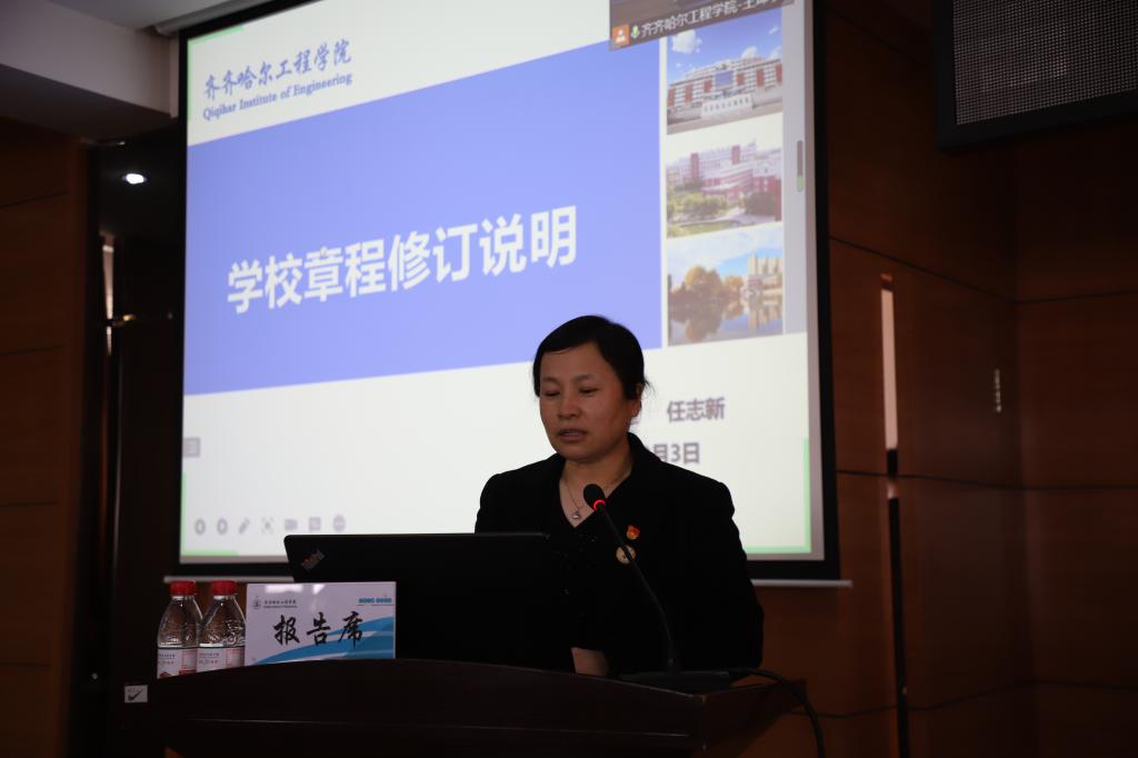 会议听取了校研究室主任任志新所作的《关于< 乐投app官方在线入口章程>修改情况说明》。