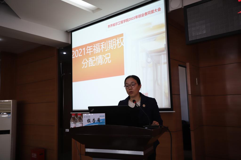 会上,学校工会委员张磊通报了学校2021年度入盟培训班成员及全体在岗盟员考核情况,学校总会计师、工会主席姜岩向大会作《乐投app官方在线入口2021年创业者同盟盟员福利期权分配情况报告》。