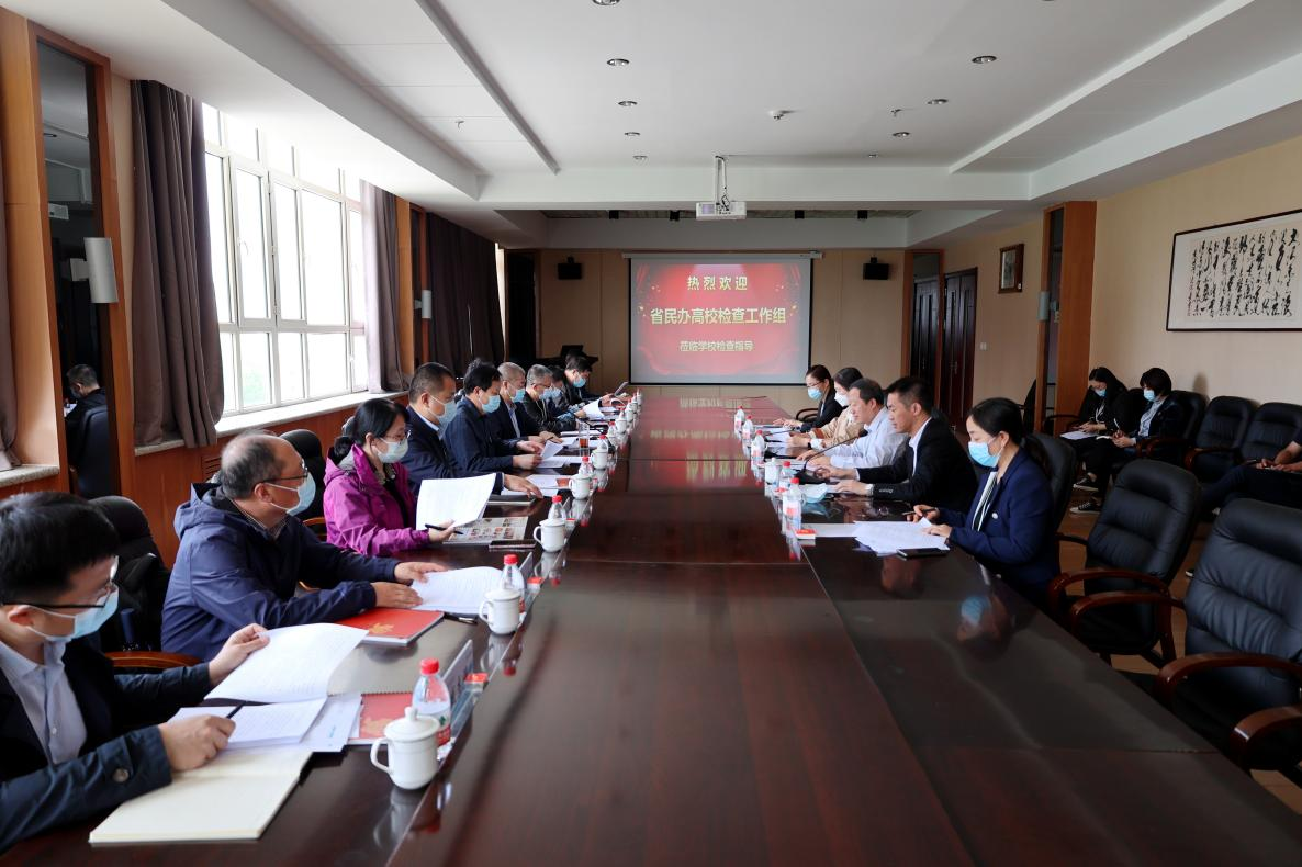 5月25日上午,以省教育厅校外培训监管处二级调研员冯岩为组长的省民办高校年检检查组一行10人莅临我校,对我校2021年度办学情况进行检查指导。院长、党委副书记曹然彬、党委书记郭伟东、总会计师、工会主席姜岩、副院长白雪及相关职能部门负责人在图书馆601会议室参会,会议由郭伟东书记主持。