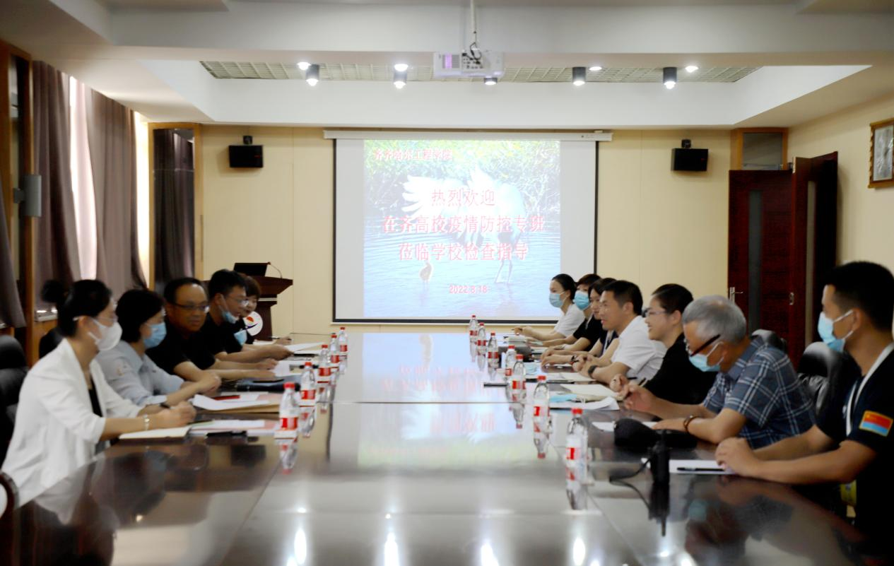 8月18日下午,在齐高校疫情防控专班在市委教育工委副书记田宇带领下,莅临我校检查指导2022年秋季学期开学疫情防控工作。学校党委书记郭伟东、副院长白雪以及相关部门负责人陪同检查。