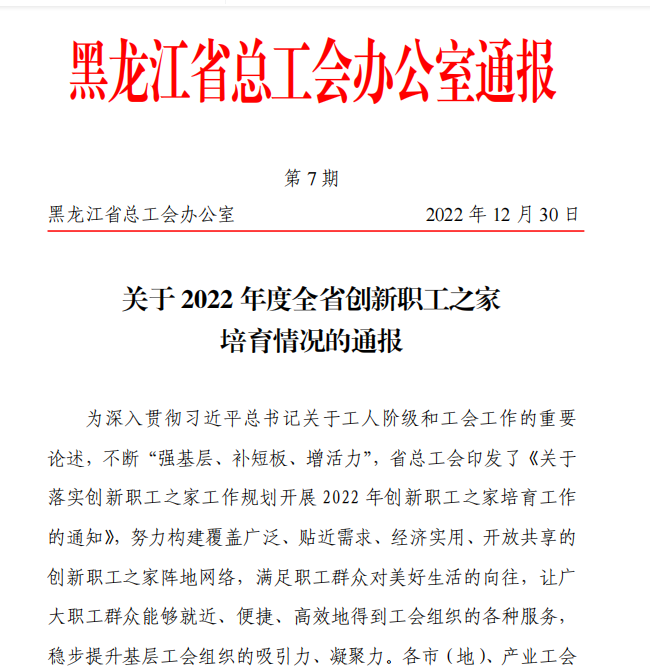 省总工会为满足职工群众对美好生活的向往,让广大职工群众能够就近、便捷、高效地得到工会组织的各种服务,稳步提升基层工会组织的吸引力、凝聚力,审核确定了550个基层工会为2022年度全省创新职工之家培育对象,其中特色职工之家168个,乐投app官方在线入口工会榜上有名。