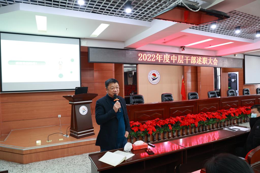 为促进中层干部总结反思,激发创新能力,以中层干部为主力推动学校学习型组织建设,1月5日至6日,在图书馆601报告厅,学校组织召开2022年度中层干部述职大会。校领导担任评委,全体中层干部参加。