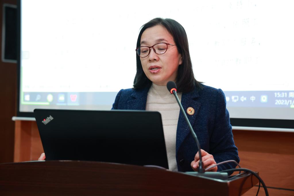 财务处胡思霞作学校工会2022年财务报告,通报了学校工会在2022年的财务收支情况。