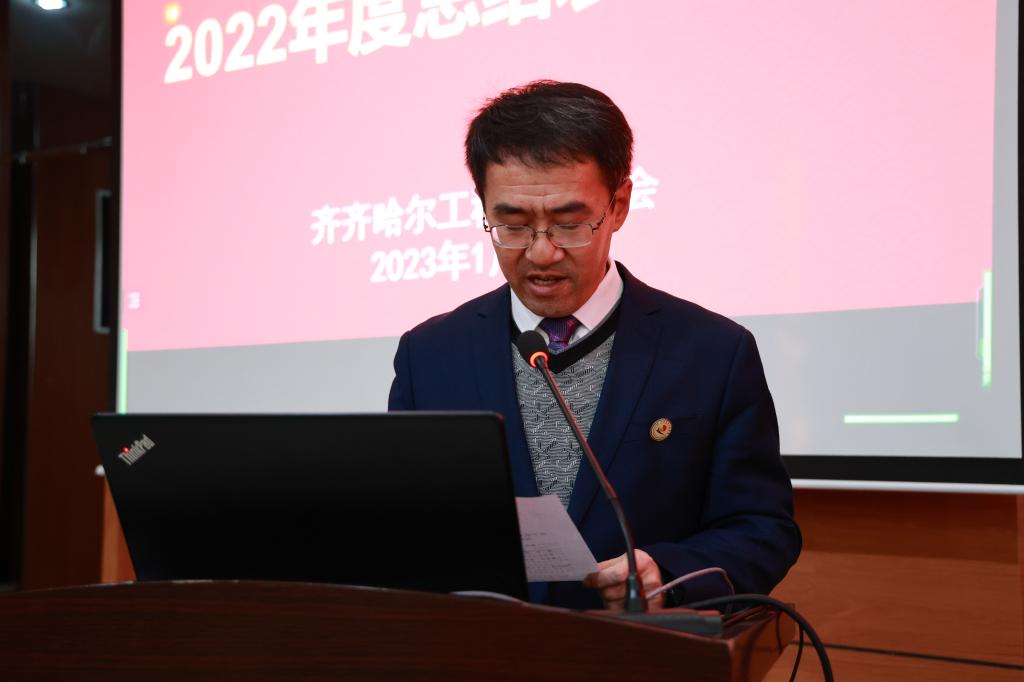 学校工会宣传委员郑洪波宣读《关于表彰乐投app官方在线入口工会2022年度星级基层工会和优秀个人的决定》。