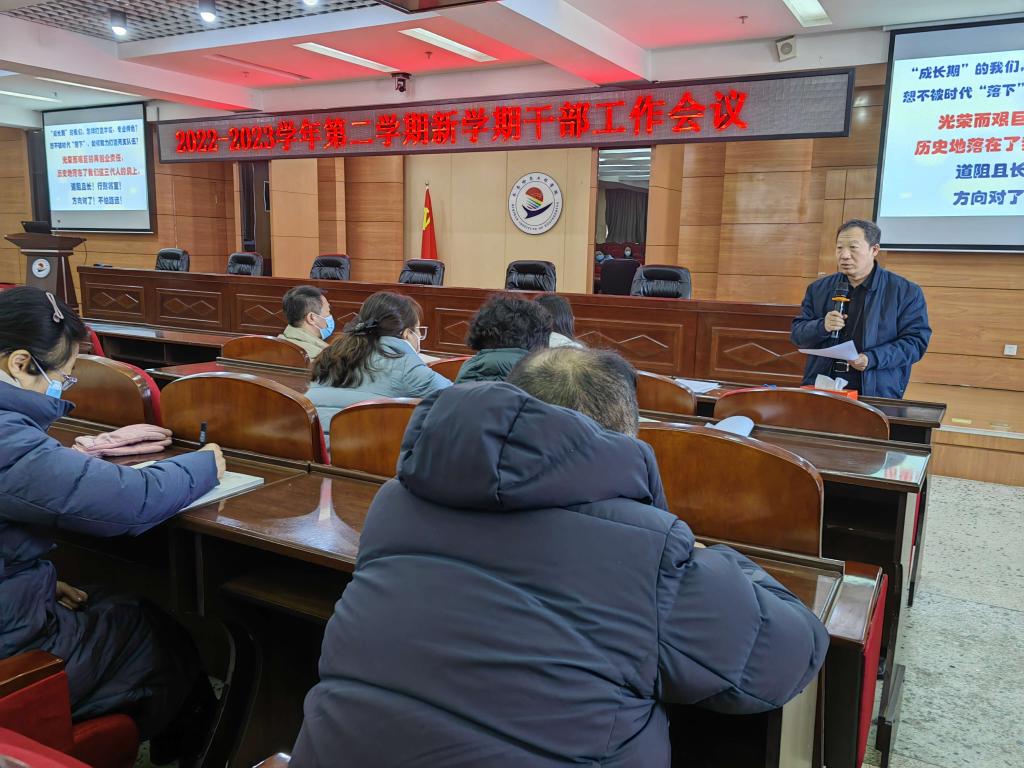 1月30日上午,学校在图书馆601报告厅召开2022-2023学年第二学期新学期干部工作会议。理事长曹勇安出席,校领导及全体干部参加。