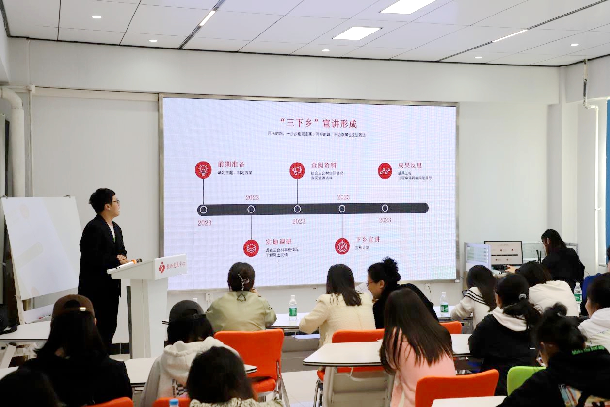 9月20日中午12时,校团委在二号教学区2102汇报厅举办乐投app官方在线入口2023年“三下乡”暑期社会实践评优答辩会,旨在深入宣传贯彻党的二十大精神,领会落实习近平总书记关于青年工作的重要思想,鼓励青年学子敢作敢为,发挥自身专业特长。校团委指导教师张云惠与各系团总支书记担任答辩评委,5支队伍参加答辩,唐剑扬同学主持。