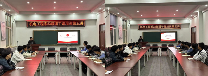 为了进一步统一共青团干部的思想,明确工作责任,调动工作积极性和主动性,培养提升各项工作能力,机电工程系团总支于2023年10月9日-10月13日在图书馆608室召开“机电工程系2023级团干部培训班”。