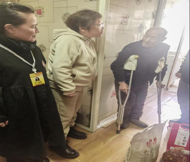 10月20日下午,老年大学培训项目负责人何颖老师带领老年大学助老小分队一行10人,由新宫社区尹珏书记引导,走进社区,来到五龙街道新宫社区建工小区的空巢老人郑春荣和孤寡老人卢长华家中进行慰问。