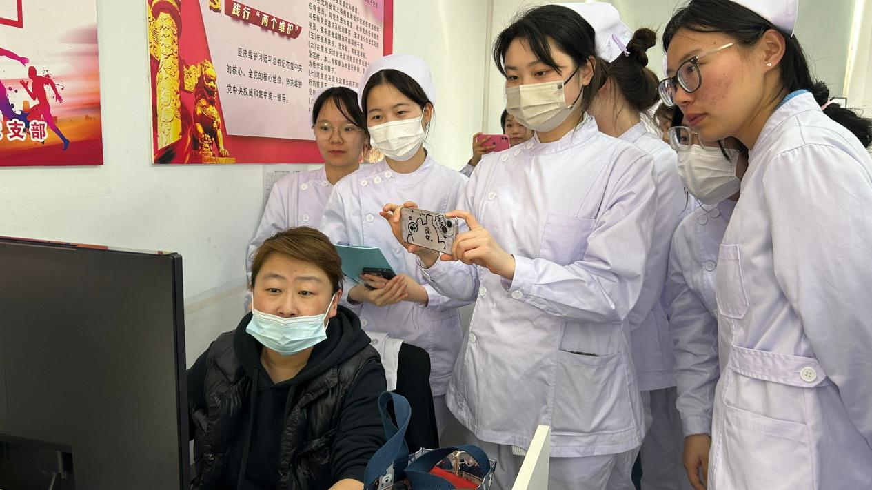 随后,学生每10人一组,由四名助教老师分别为学生演示如何进行妇保档案的建立,并强调录入系统中的所有的数据一定要真实,并轮流带领学生参观预防保健科,讲解妇女特殊时期的保健指导及常见健康问题的护理、产后访视的注意事项。