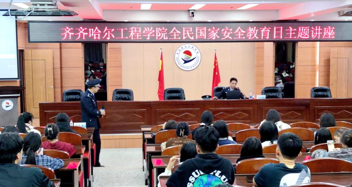 开展一次安全法治教育。4月15日,学校邀请齐齐哈尔市公安局高新分局民警进行全民国家安全教育日法治主题讲座,详细介绍了总体国家安全观的重要意义、国家安全法律法规、国家安全战略、国家安全保障体系等重要内容。