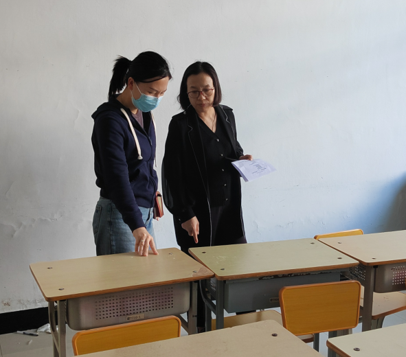姜岩、张磊对教学设备的完好情况、运行状态及桌椅的稳定性等展开全方位的检查,对于发现的个别设备老化、维护不及时等问题,现场明确责任和整改期限并提出解决方案。