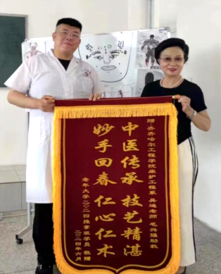 学习结束后,学员们表示,通过这学期的学习,不仅掌握了推拿的基本技能,更感受到了老师的无私奉献和关爱。学员们特地准备了一面锦旗,上书“中医传承、技艺精湛,妙手回春、仁心仁术”,以表达敬意和感激之情。