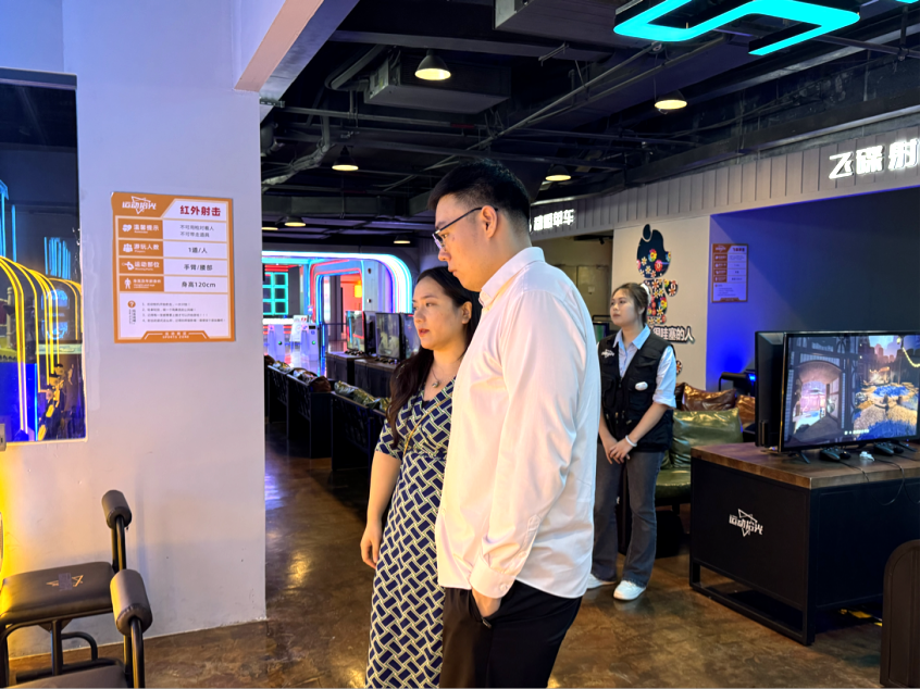 下午,考察团来到思明实业(广州)有限公司,总经理肖存对公司的产品及服务范围进行了详细介绍。随后,考察团赴蚂蚁数码娱乐有限公司,总经理喻官福详细介绍了经营模式及门店分布区域,并带领考察团亲身体验了展厅内的游玩项目。