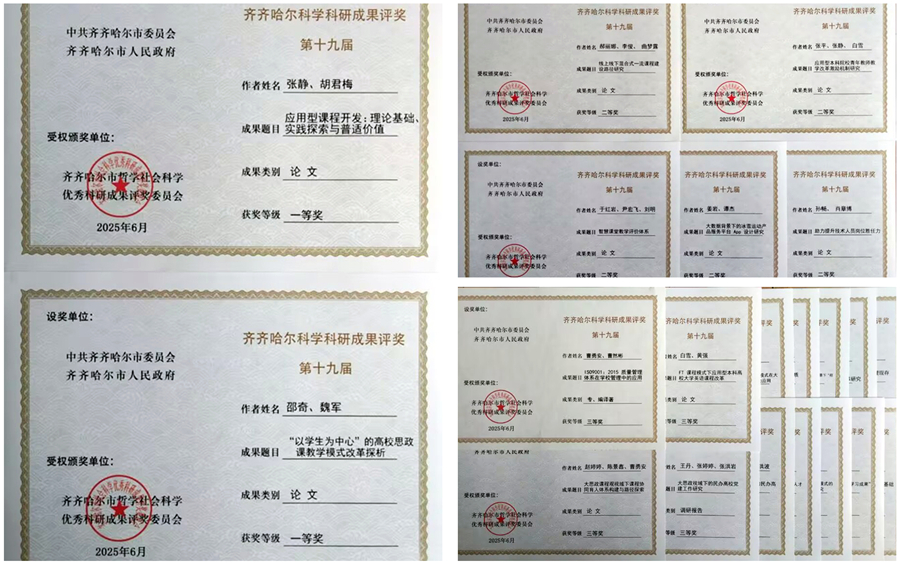 近日,齐齐哈尔市第十九届社会科学优秀科研成果奖评选结果揭晓,我校共有21项科研成果荣获该奖项。其中,一等奖2项,二等奖5项,三等奖14项。