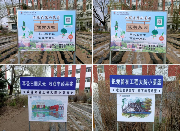 走进小菜园,一块块网红打卡牌格外醒目,上面印着温暖的邀约:“把爱留在工程大院小菜园”“欢迎来到这片绿色小天地”“风里雨里,我们在这里等你”。吸引众多师生拍照留念、分享种植故事。