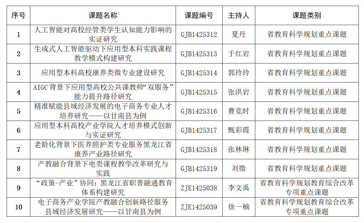日前,黑龙江省教育科学规划领导小组公布2025年度省教育科学规划课题立项名单,我校成功获批10项重点课题包括年度重点课题8教育综合改革专项课题2项。
