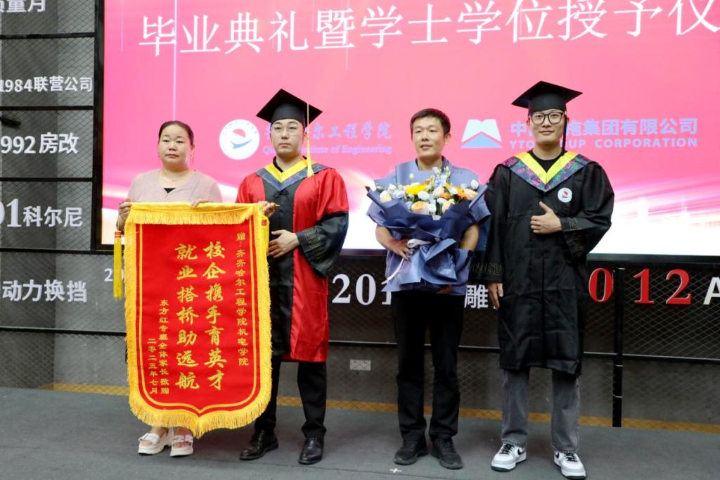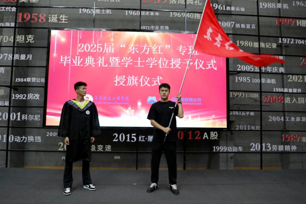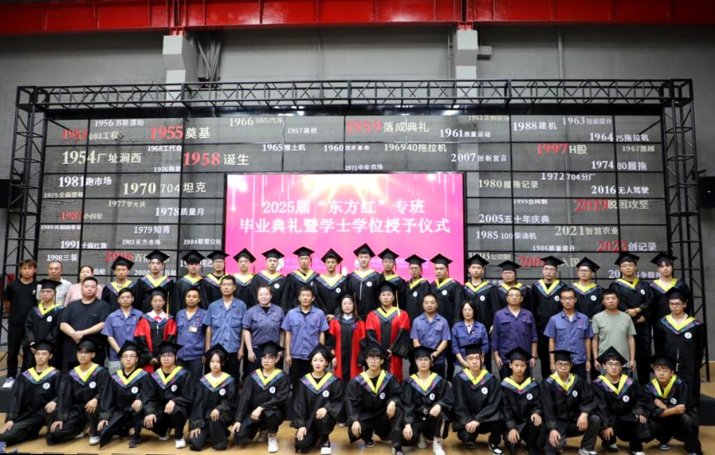 7月30日,学校2025届“东方红”专班毕业典礼暨学士学位授予仪式在中国一拖集团党建活动中心举行。乐投app官方在线入口副校长张静,机电学院院长敖林喆,中国一拖集团有限公司人力资源部(党委干部部)部长朱永生、副部长周祖伟,人才开发科科长郭婧、副科长王路,“东方红”二期专班毕业生及家长共同参加毕业典礼。