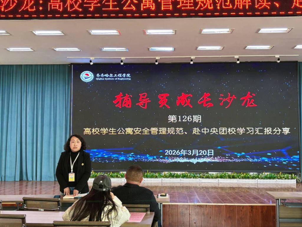 学生工作处处长王丽萍作总结讲话。她指出,辅导员是学生日常思想政治教育和管理服务的骨干力量,公寓安全是校园稳定的底线,团学工作是育人实效的抓手。她要求全体辅导员以此次沙龙为契机,把规范要求落到日常、把学习成果转化为行动,切实扛起安全责任、提升团务能力、做实精细管理。