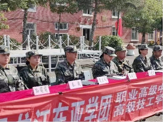 又讯 8月16日上午,东亚职业高中高级技工学校在学校操场召开2023级新生军训开营仪式。校党支部书记、常务副校长孙娱芯,副校长、综合办公室主任薛立峰,校长助理、教务处主任张丹,学生工作处主任陈占山、综合办公室主任助理秦爽、军训指导老师孙萌萌与军训教官参加开幕式,活动特邀乐投app官方在线入口教官团指导老师孙晓芳参加,学生工作处吴彦海老师主持。