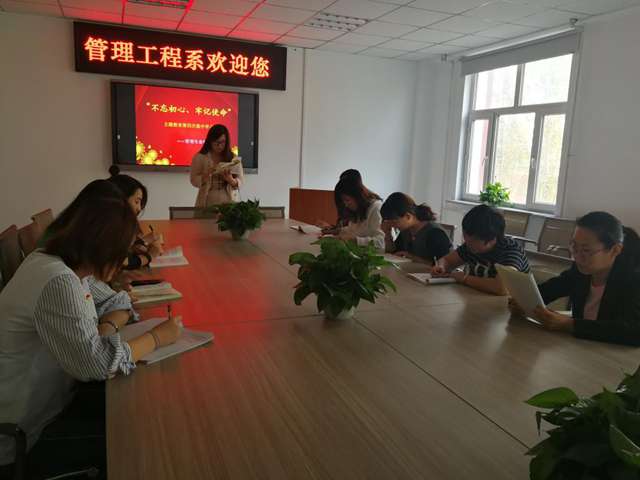 9月28日下午,管理专业教师党支部组织“不忘初心、牢记使命”主题教育第四次集中学习。支部书记于红岩主持学习,党员赵靖宇领学了《习近平关于“不忘初心、牢记使命”论述摘编》中“把政治建设摆在首位,不断增强‘四个意识’、坚定‘四个自信’、做到‘两个维护’”内容。全体党员重温“四个意识、四个自信、两个维护”,表示作为教师党员,要坚持学习党的理论知识,自觉同党中央保持高度一致。