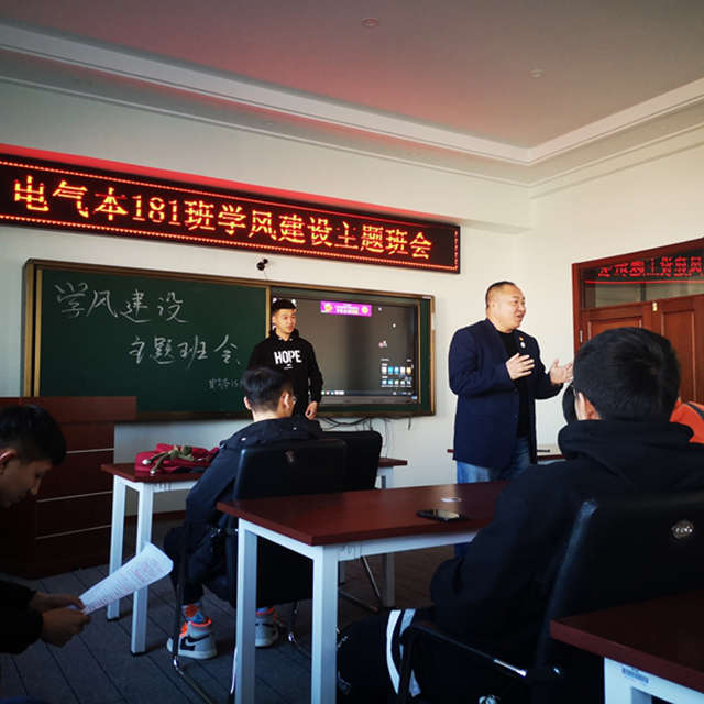 11月7日,机电工程系学生工作负责人孙晓芳、辅导员王连俊老师来到电气本181班召开学风建设主题班会。孙晓芳老师重申学风建设的重要性,已通过英语四级考试的电气本181班马辉正、梁咏琪、王世超同学分享了各自坚持每天复习与巩固的英语学习方法,获得奖学金的吴庆宇、刘振兴同学交流了他们对学习的态度以及日常学习经验,王连俊讲解了如何建设良好的学风。